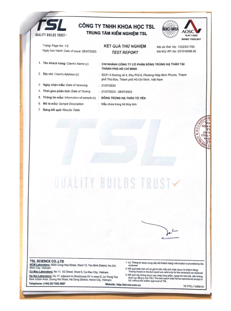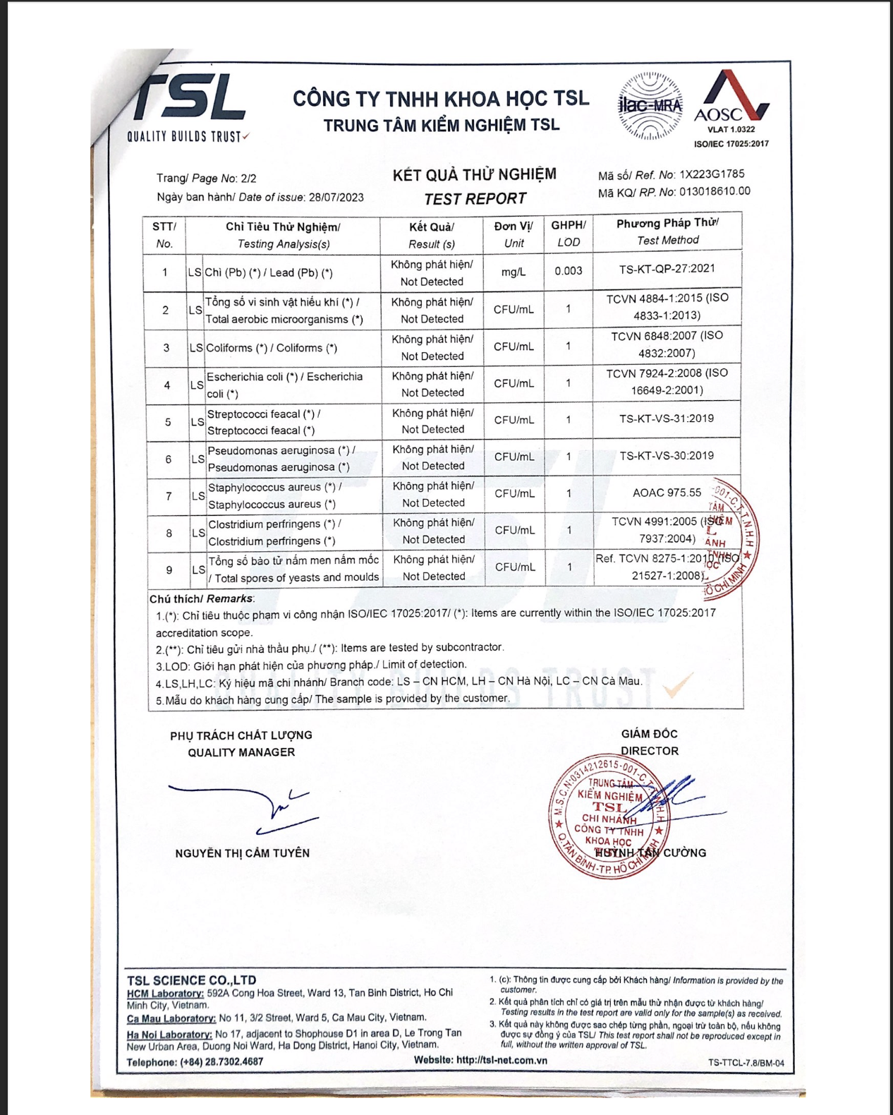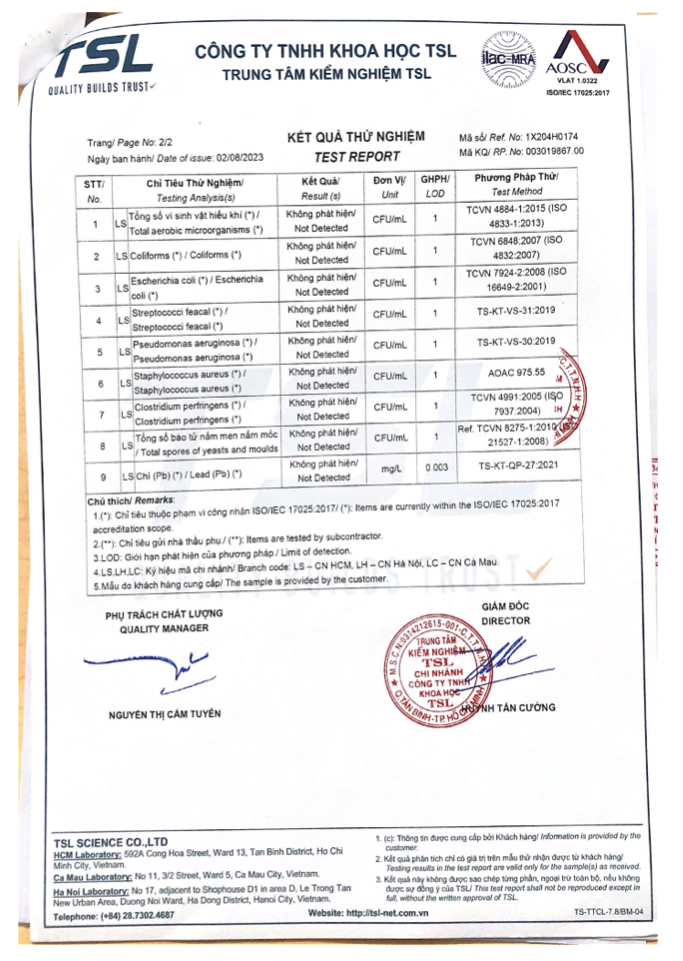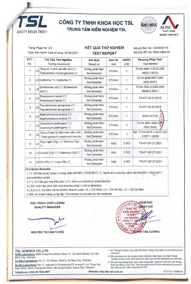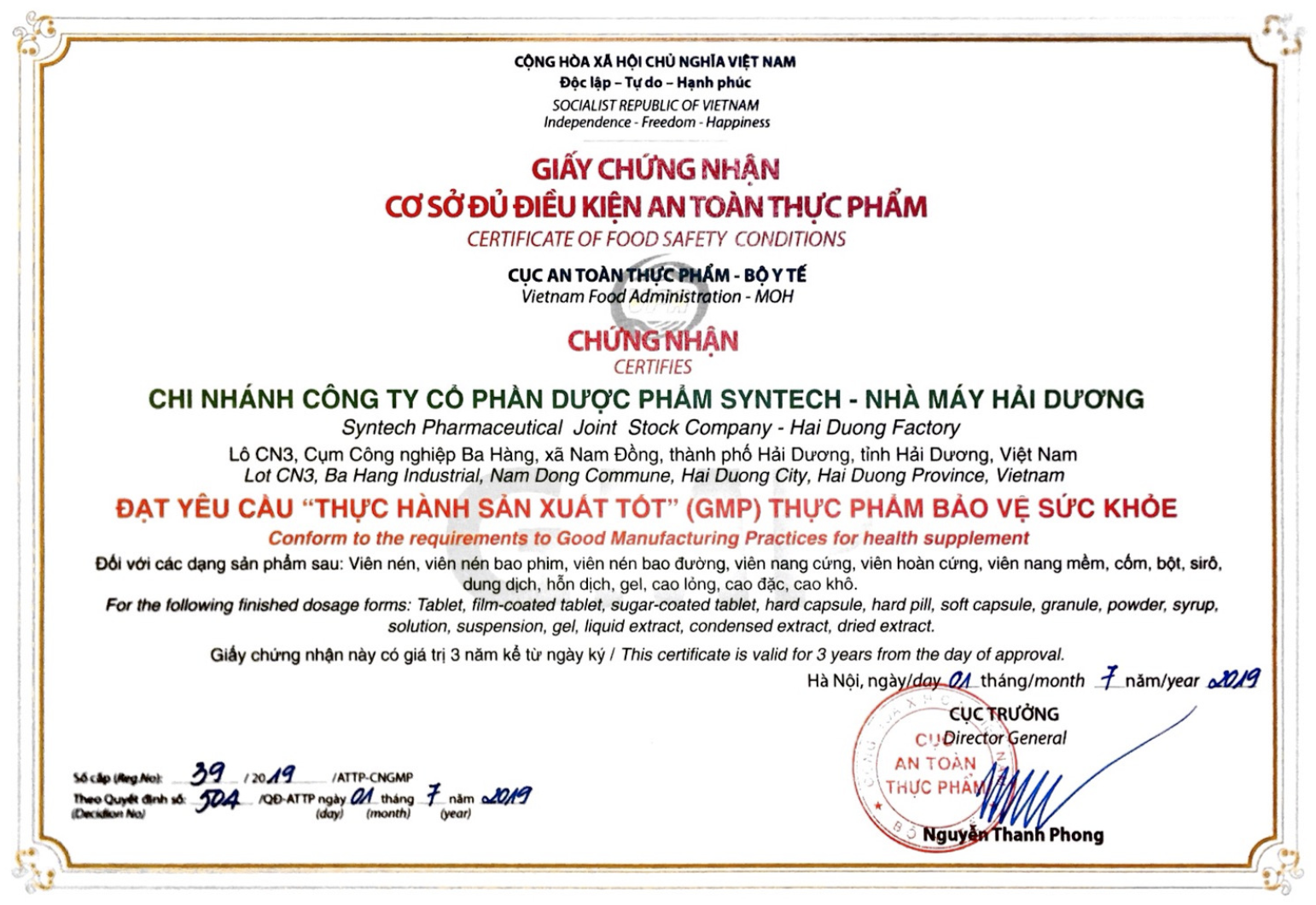- Giấy chứng nhận cơ sở đủ điều kiện an toàn thực phẩm: Được cấp bởi Bộ Y tế, chứng nhận cơ sở vật chất, trang thiết bị, quy trình sản xuất và con người của chúng tôi đều đáp ứng đầy đủ các tiêu chuẩn nghiêm ngặt về vệ sinh an toàn thực phẩm.