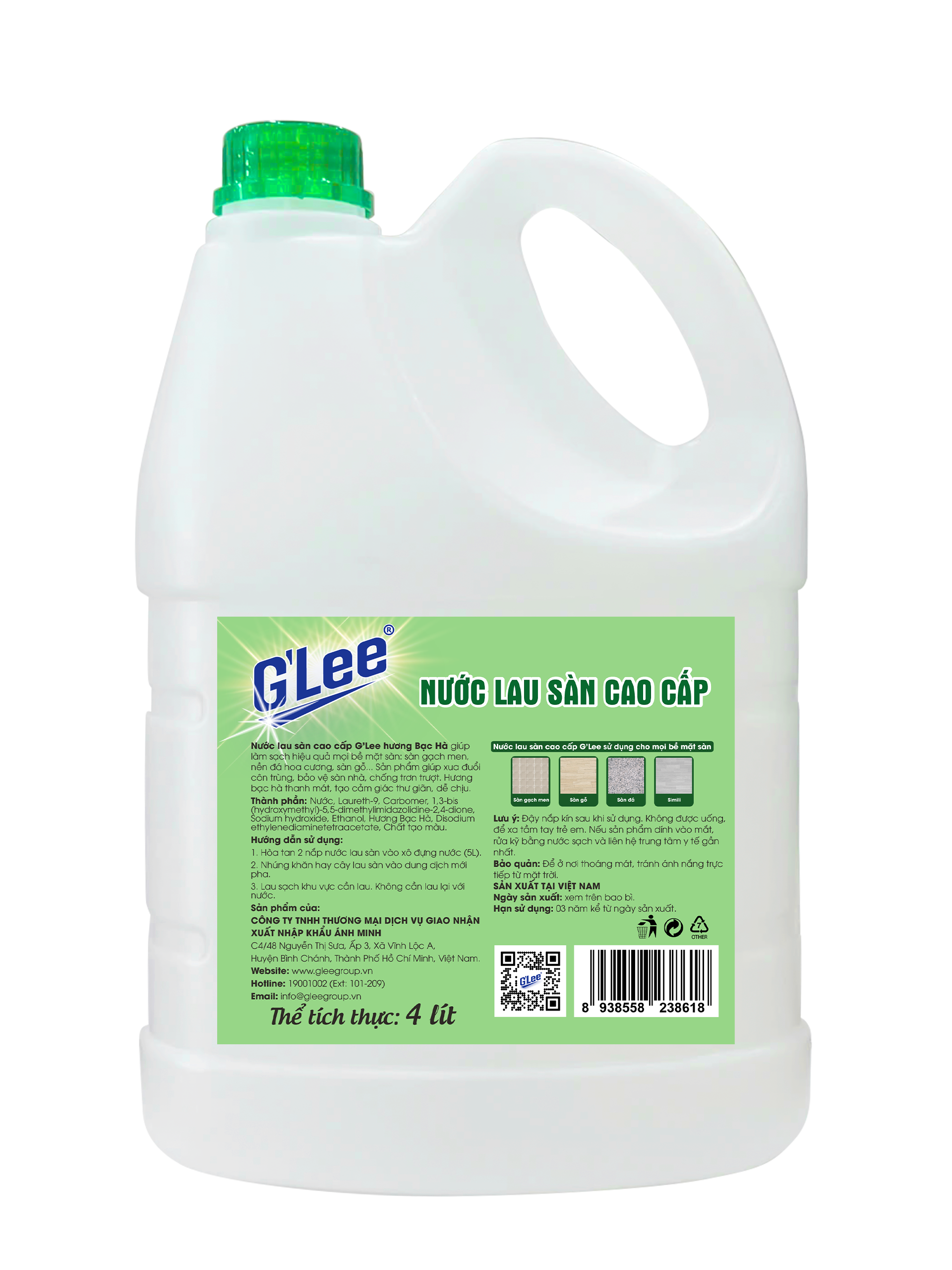 - Nước lau sàn cao cấp G’Lee hương bạc hà giúp sàn nhà sạch bóng kin kít, sản phẩm giúp sử dụng hiệu quả trên mọi bề mặt sàn: sàn gạch men, đá hoa cương, gạch khảm, kể cả sàn gỗ...